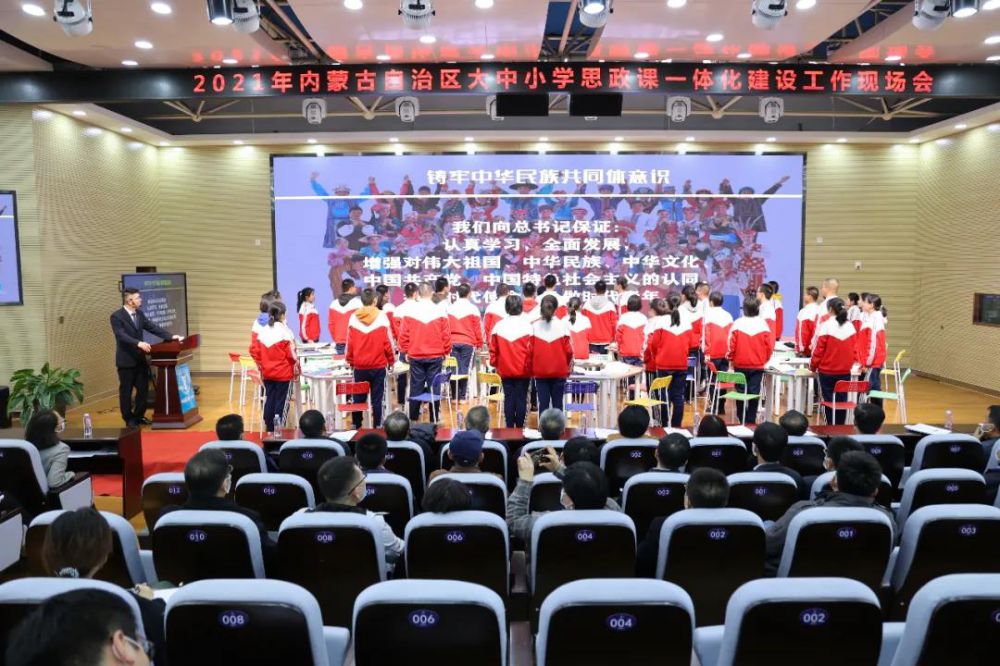2021年3月17日,內(nèi)蒙古自治區(qū)黨委宣傳部、高校工委、教育廳在呼和浩特市聯(lián)合召開我區(qū)大中小學思政課一體化建設現(xiàn)場會。會議深入貫徹落實學校思想政治理論課教師座談會精神及中央、自治區(qū)關于思政課改革創(chuàng)新的一系列部署,交流展示各地各校深化思政課改革創(chuàng)新的經(jīng)驗做法,以“鑄牢中華民族共同體意識”為主線構建全區(qū)大中小學思政課一體化建設新格局。