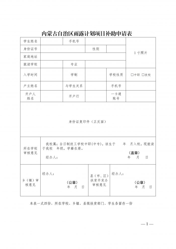 內(nèi)蒙古自治區(qū)雨露計劃項目補助申請表