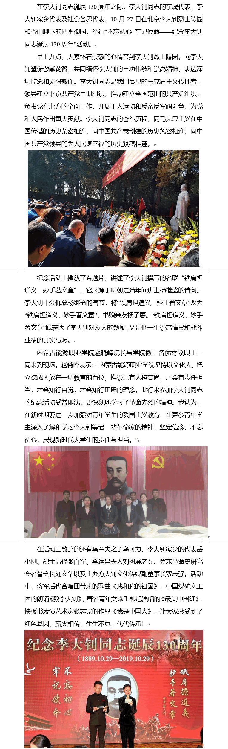 學(xué)院院長趙曉峰帶領(lǐng)優(yōu)秀教職工 參加紀(jì)念革命先驅(qū)李大釗誕辰130周年活動(dòng)