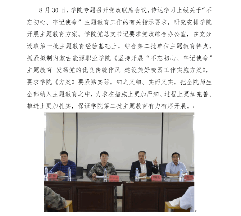 2021年12月4日上午,內(nèi)蒙古能源職業(yè)學(xué)院黨總支召開(擴(kuò)大)會議,專題傳達(dá)學(xué)習(xí)中國共產(chǎn)黨內(nèi)蒙古自治區(qū)第十一次代表大會精神,并結(jié)合學(xué)院實際,研究貫徹落實措施。學(xué)院黨總支書記陳澤鋒主持會議并講話,黨總支委員、各黨支部書記、團(tuán)委書記、各職能部門負(fù)責(zé)人參加會議。...